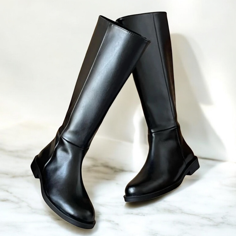 Botas de cuero black 100 % forrada en cuero, con cierre entero, taco de 3 cm , caña de altura de 38 cm. circunferencia de 39 cm. forrada en cuero ., fondo de suela.