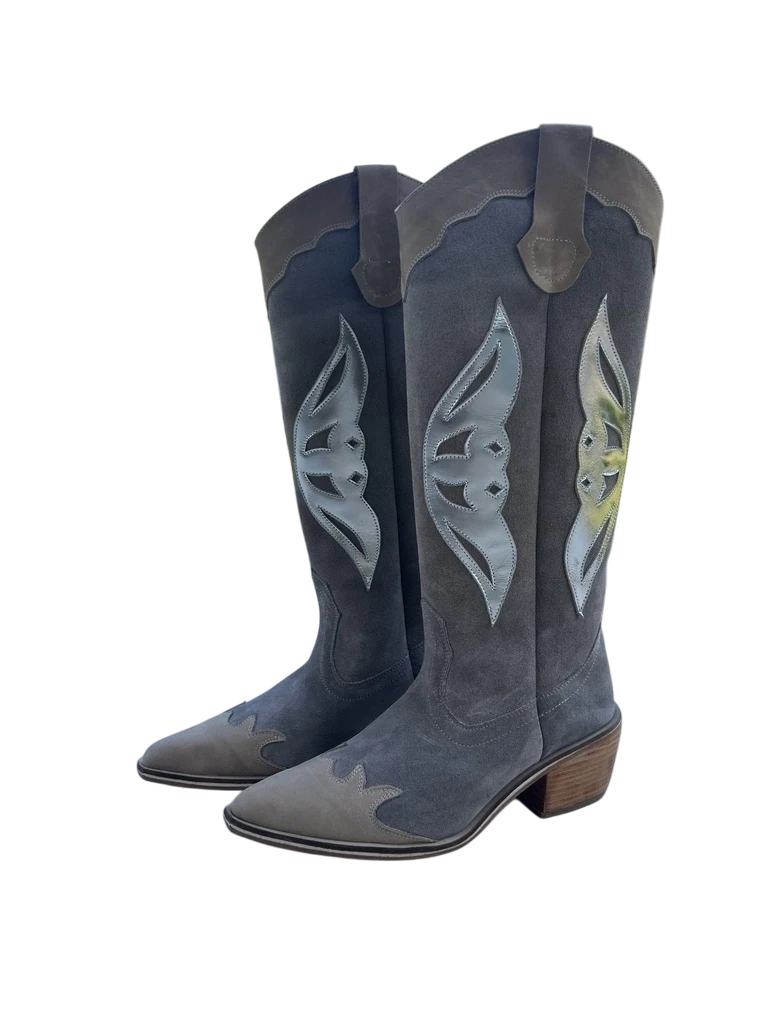 Botas de gamuza Vison, cuero silver, y cuero visón .