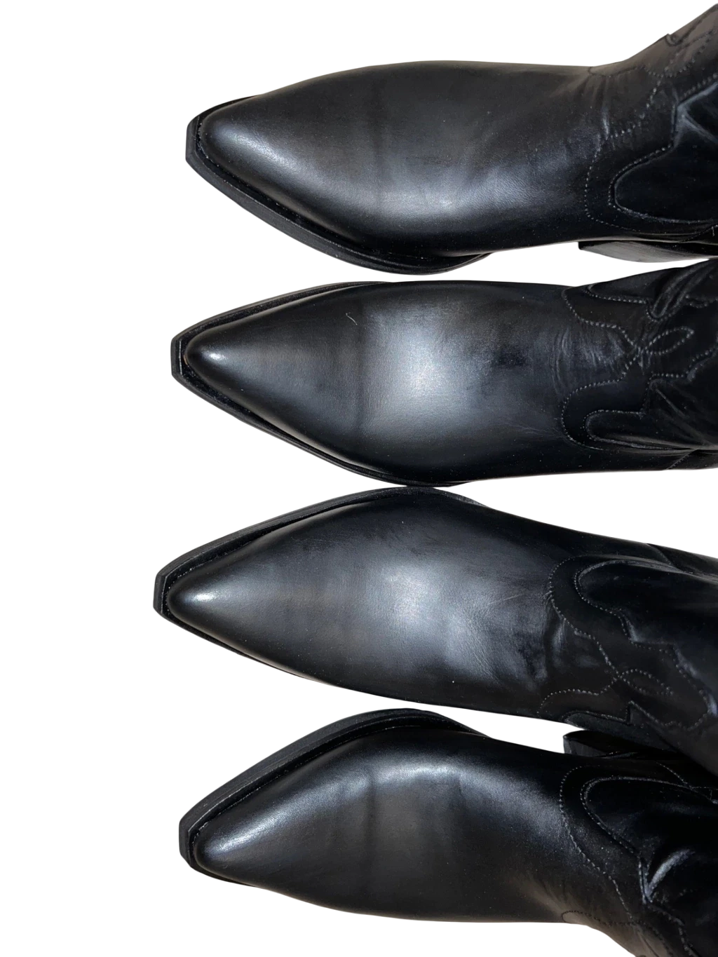 Botas de piel cuero black , taco de 5 cm, caña 36 cm de alto , desde el talón descalza.