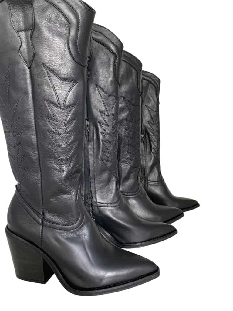 Botas Texanas caña alta, 100 % de cuero con hilo bordado en color negro,