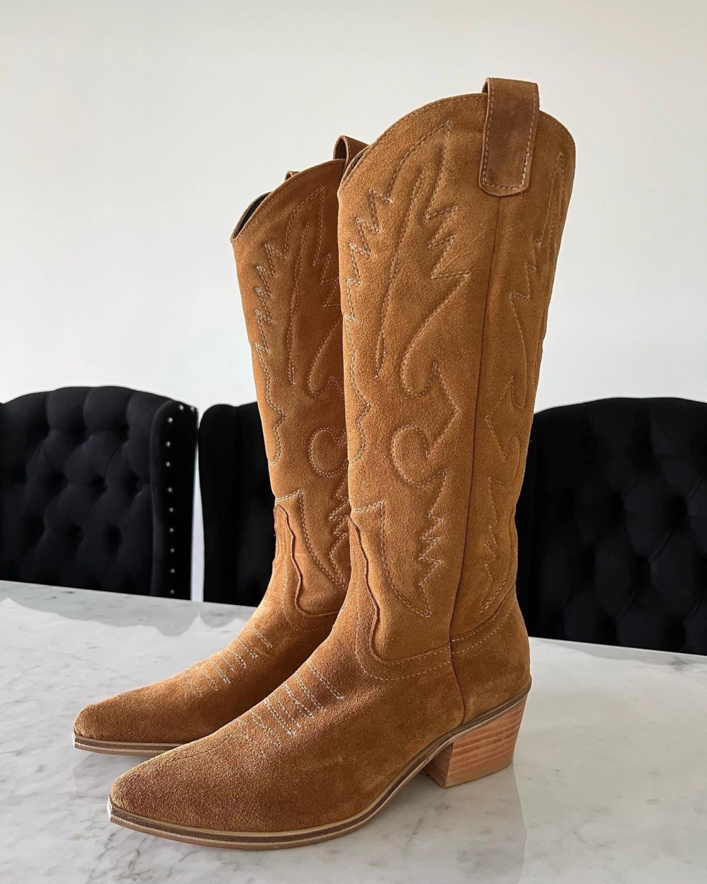 Botas texanas altas 36 cm de costado , medirse descalza quedaría a esa altura. Taco 5 cm .gamuza Camel.