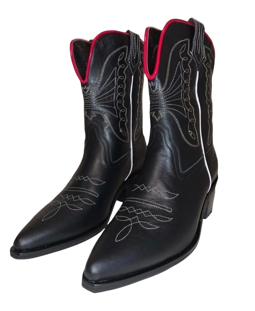 Texanas de cuero 100% color negro, bordadas color blanco,nude y colorado. Taco 5 cm.. 26 cm total. De altura. Preventa 1 semana de entrega. 10 DIAS DESPUES DE LA COMPRA.
