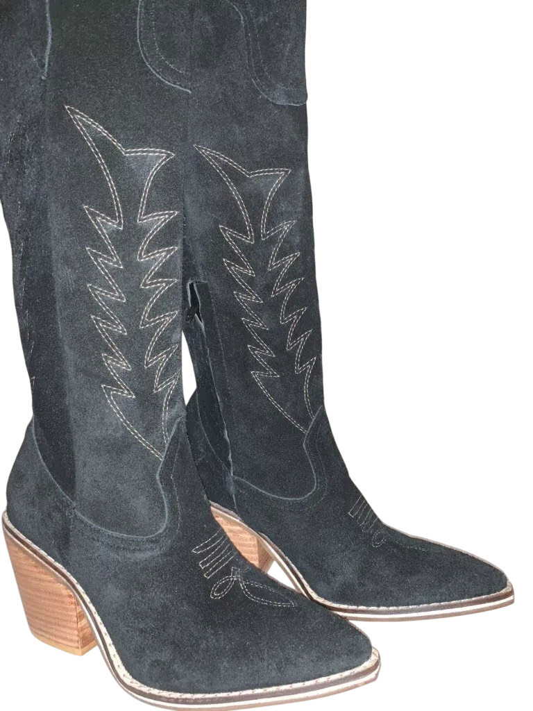 Botas texanas de Gamuza de color negro, 46 cm total, 8cm taco, comodidad.