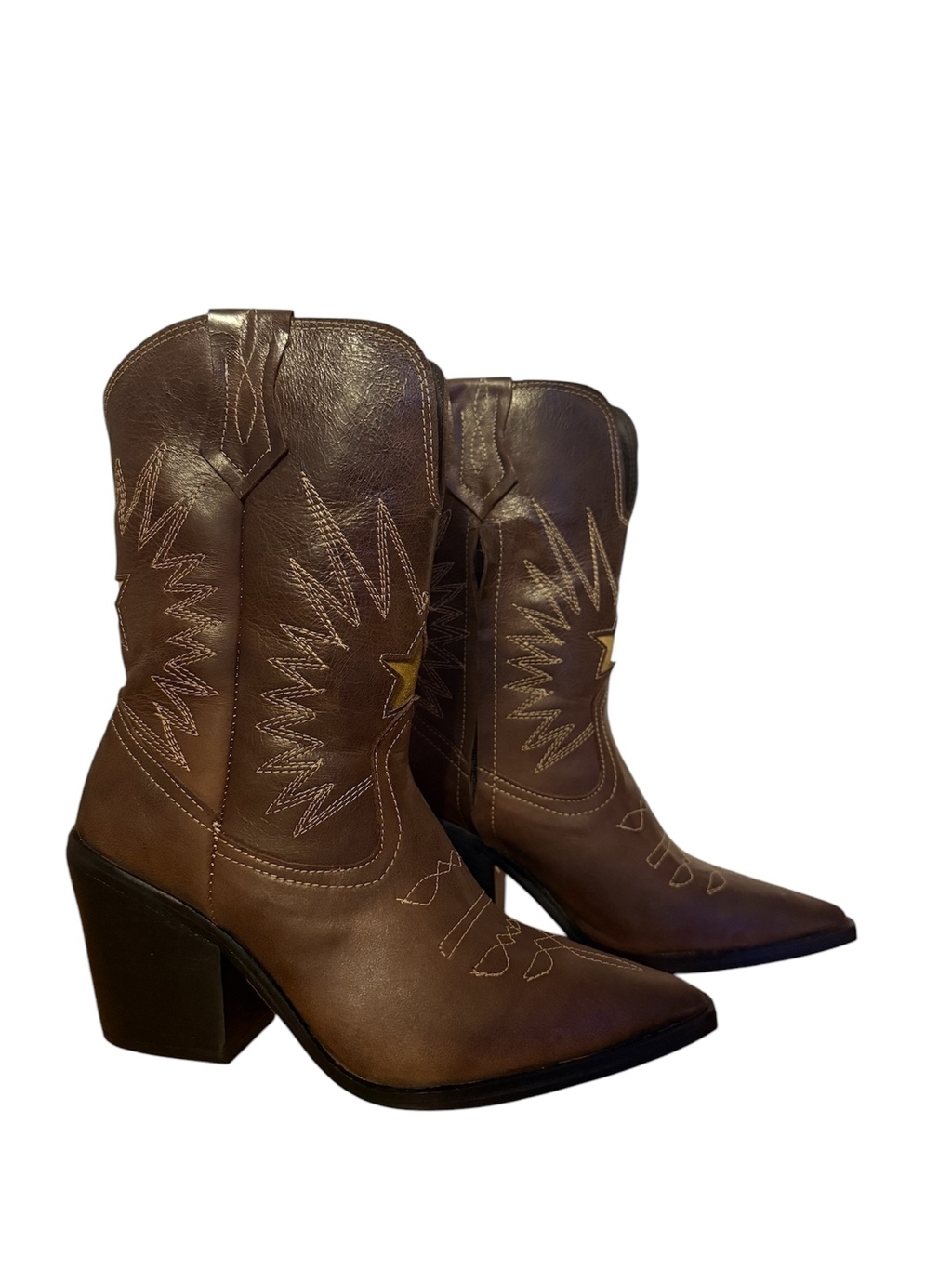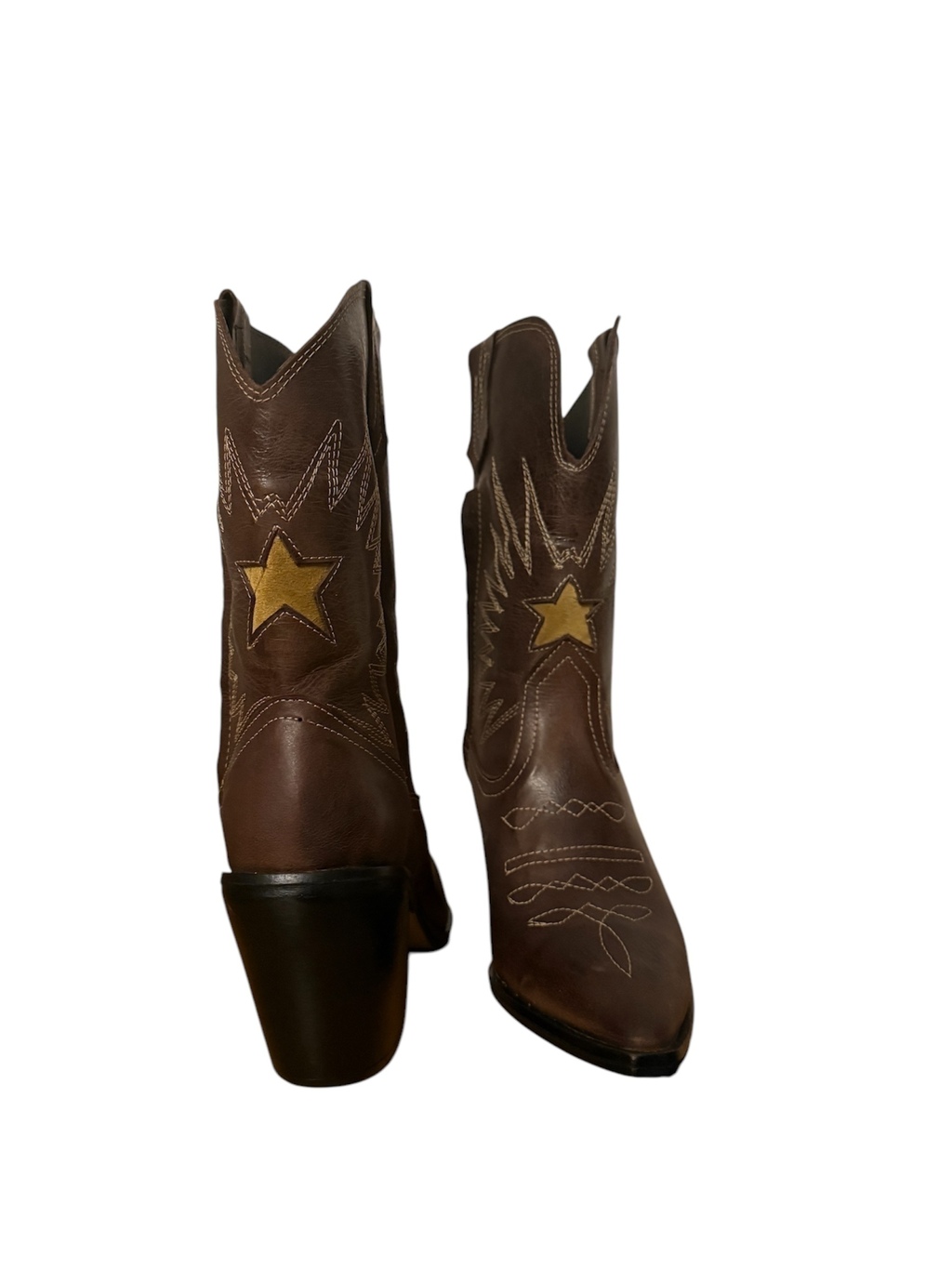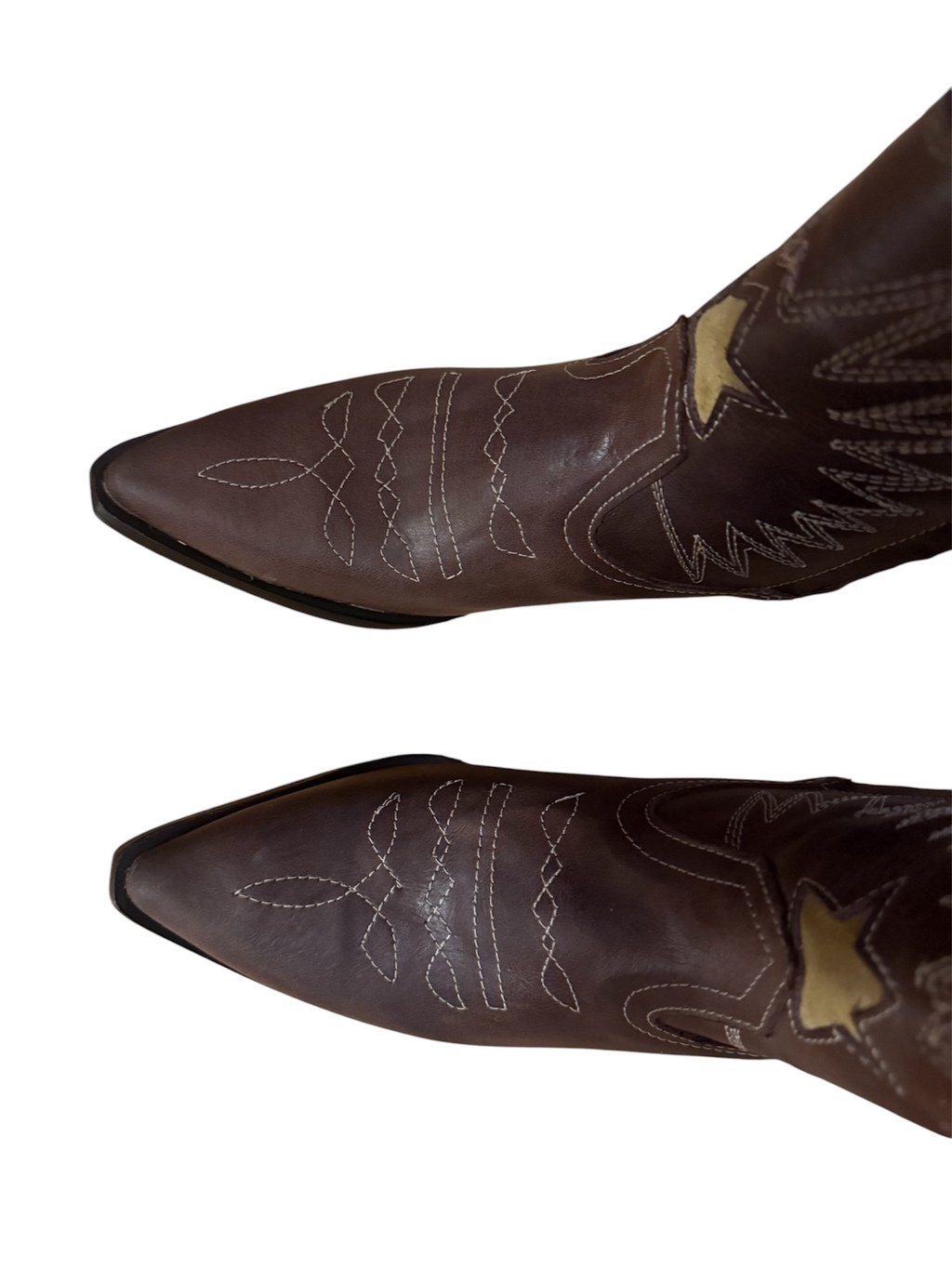 Botas texanas de cuero Brown de 23 cm de caña y 7.5 cm de taco
