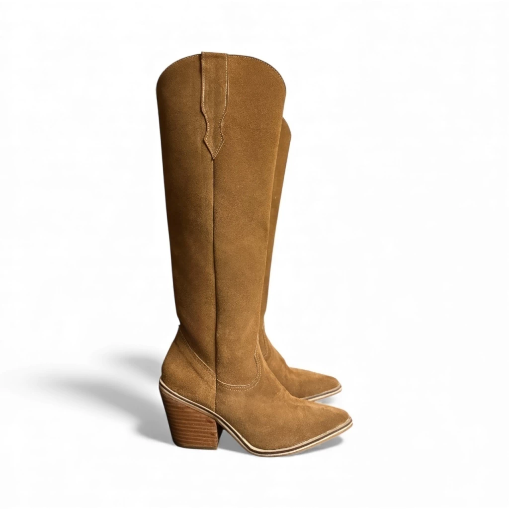 Botas de gamuza coco súper soft, caña de 41 cm y taco de 7.5 cm .