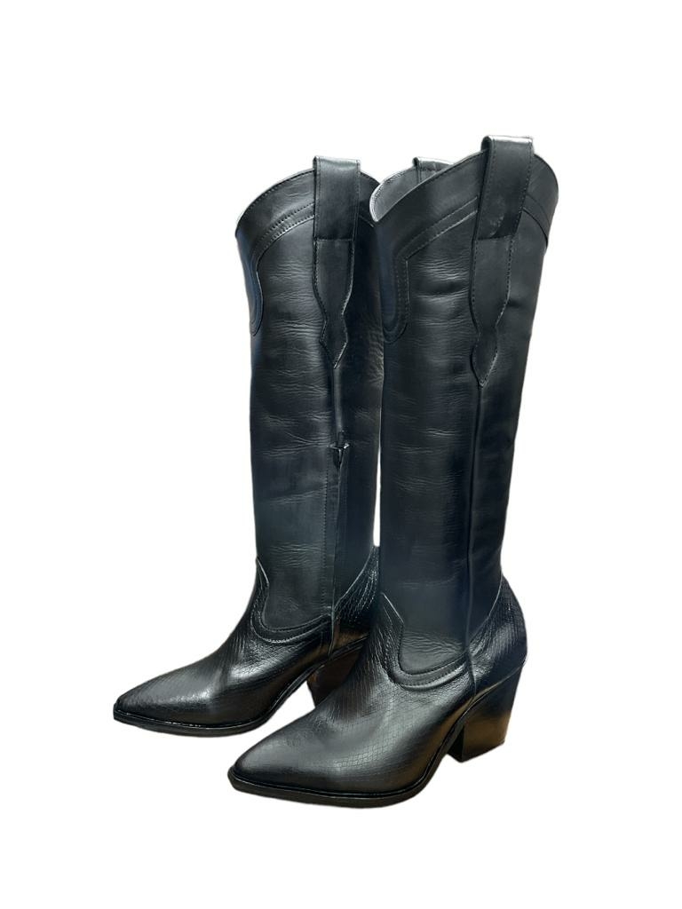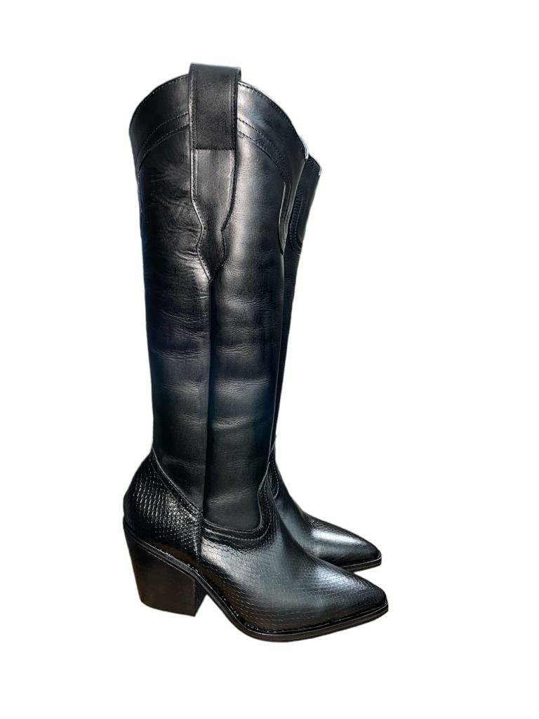 Botas de cuero black y reptil, taco 8 cm