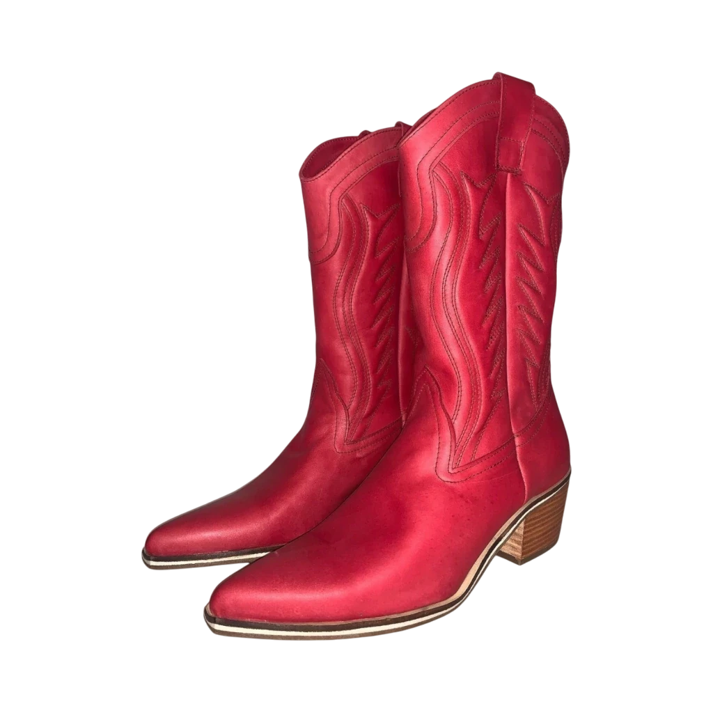 Texanas de cuero red, caña media, taco 5 cm, caña 26 cm